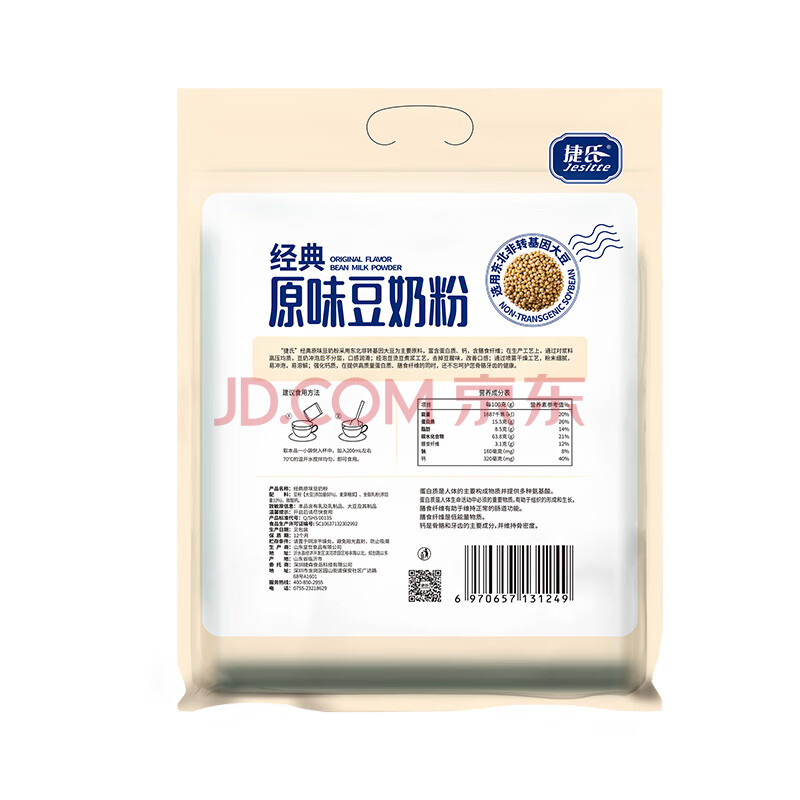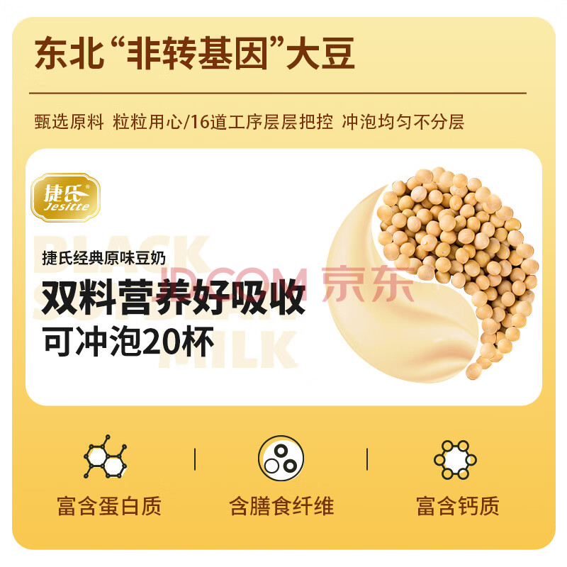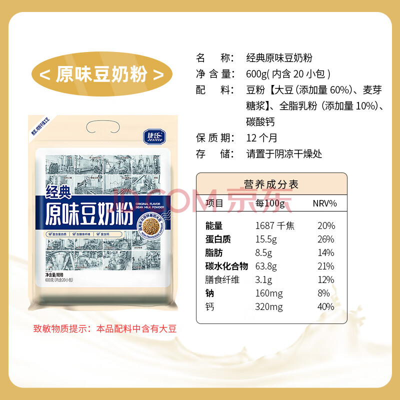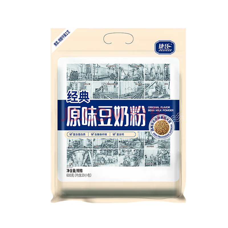 商品相册:捷氏原味豆奶粉600g非转基因大豆高钙高蛋白速溶冲饮谷物早餐独立包装第
