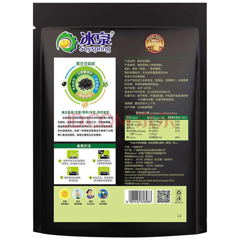 商品相册:冰泉豆浆 无蔗糖添加黑豆豆浆粉 360g(30g*12小条)第