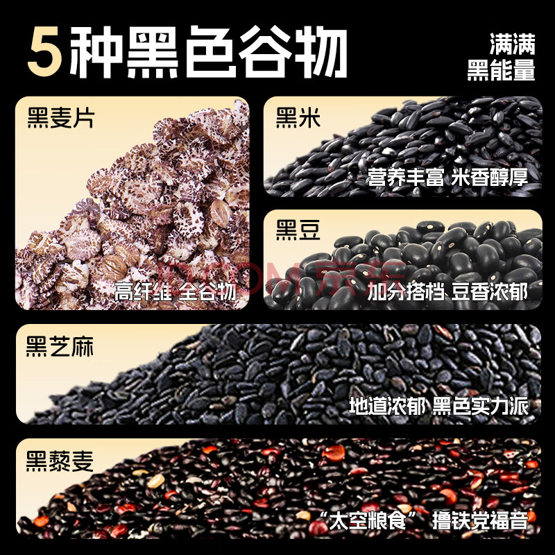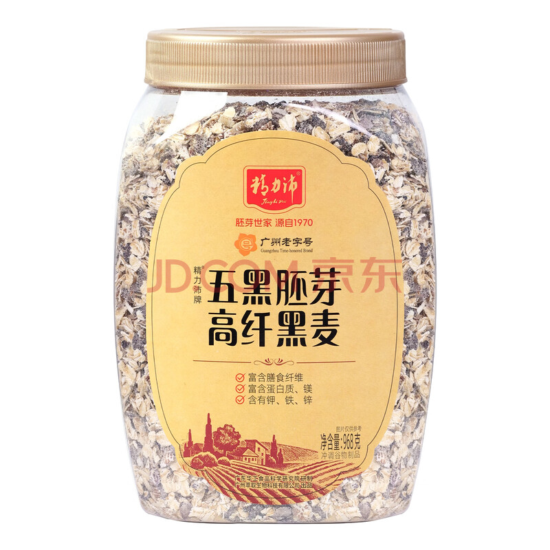 商品相册:精力沛五黑胚芽高纤黑麦968g/罐 营养冲泡免煮谷物健康滋养早餐第