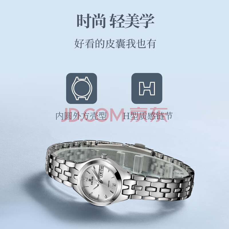 商品相册:依波(EBOHR)手表女 大师系列雅致白面钢带石英生日节日礼物女表50030224第