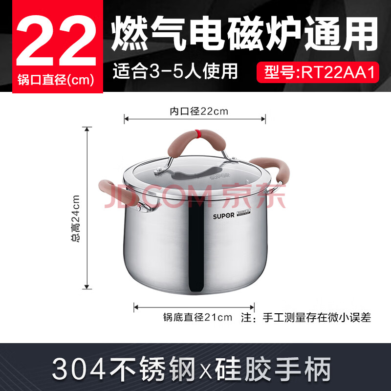 商品相册:苏泊尔supor小红圈304不锈钢汤锅芯彩系列22cm明火电磁炉通用RT22AA1第