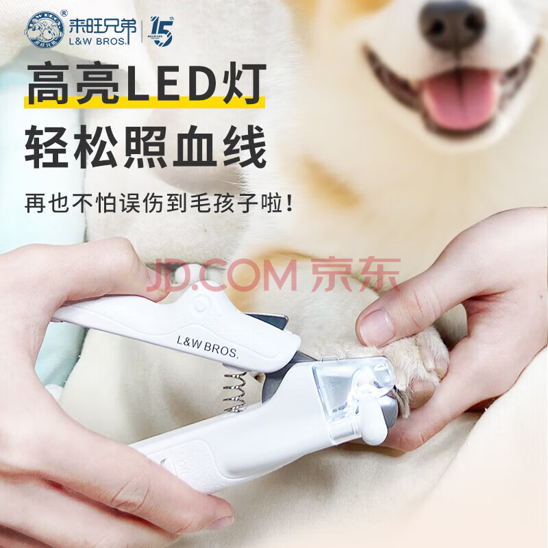 商品相册:来旺兄弟狗狗指甲钳宠物猫咪指甲剪LED灯泰迪金毛指甲刀磨甲用品 白色第1张/共8