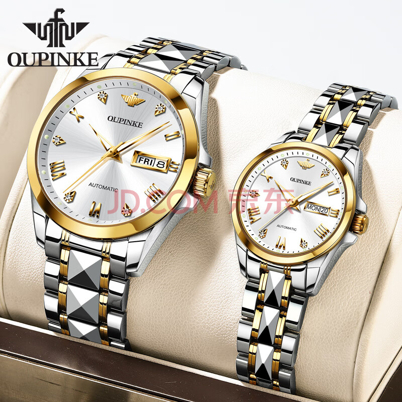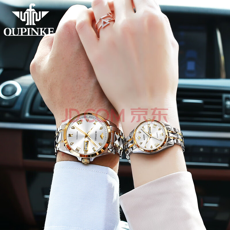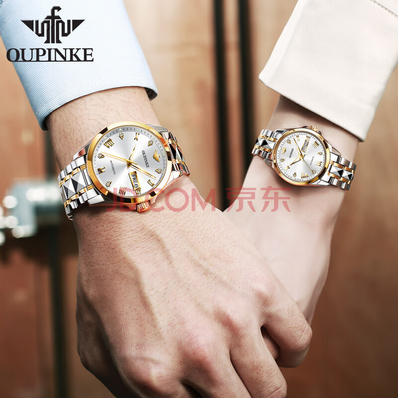 商品相册:欧品客瑞士认证品牌情侣手表男生日礼物全自动机械表女简约防水情侣对表第