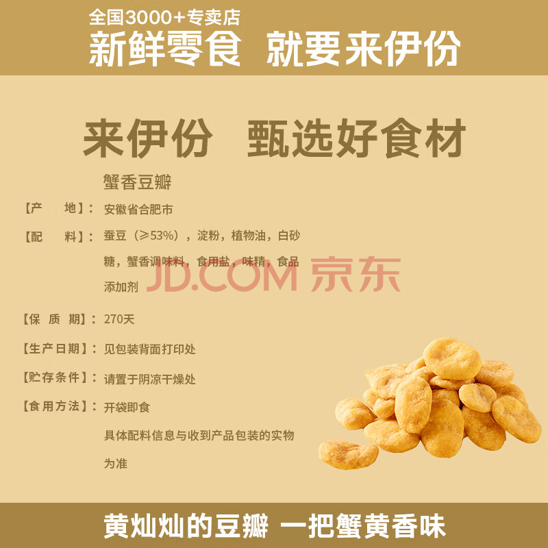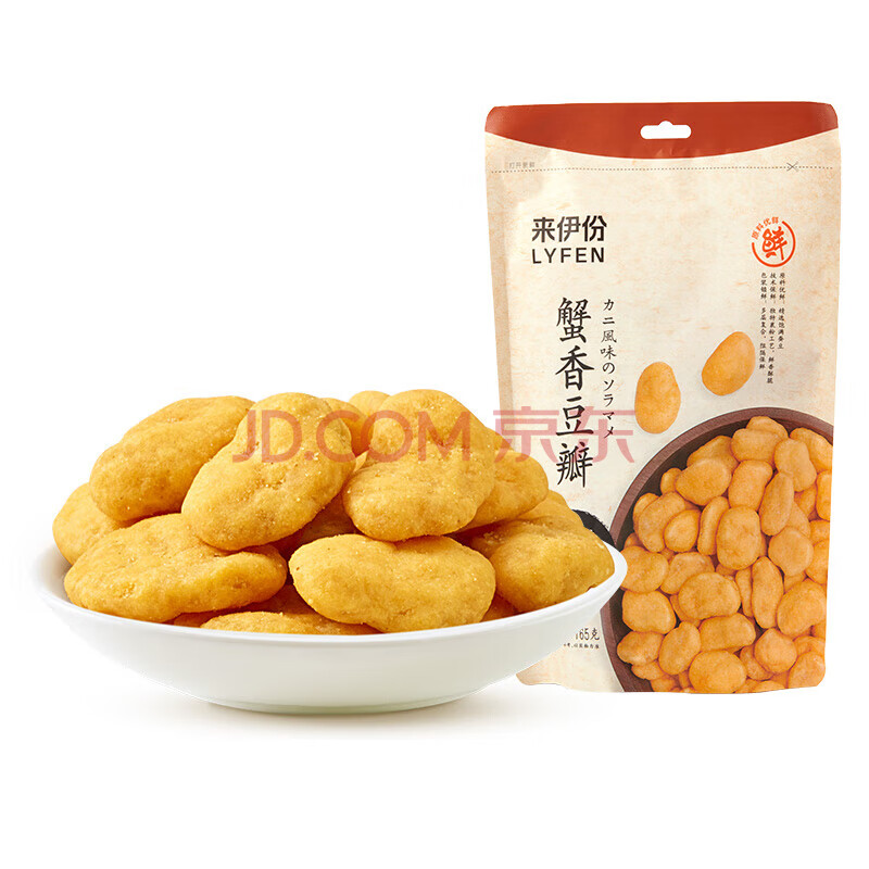 商品相册:来伊份蟹香兰花豆瓣165g蟹黄味 每日坚果干果炒货蚕豆 休闲零食第