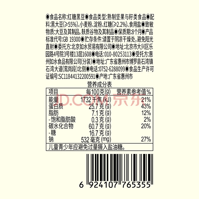 商品相册:如水 红糖黑豆260g/罐 健康养生干果炒货休闲零食 配料放心老少皆宜第