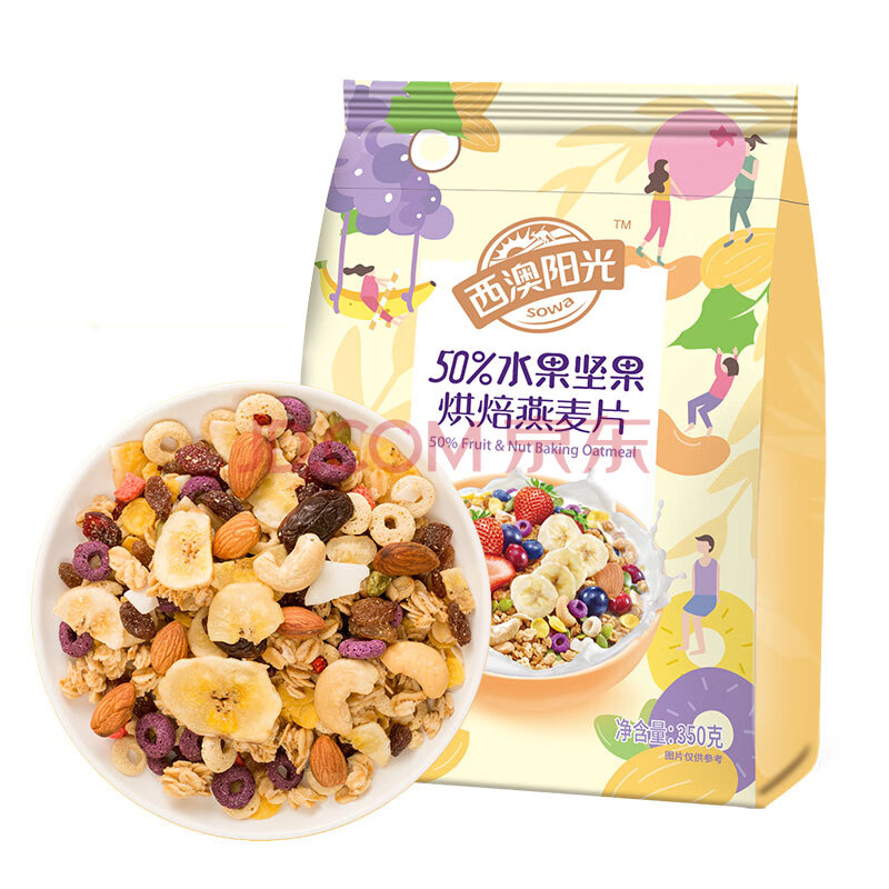商品相册:西麦50%水果坚果烘焙燕麦片350g 营养早餐五谷代餐干吃休闲零食第