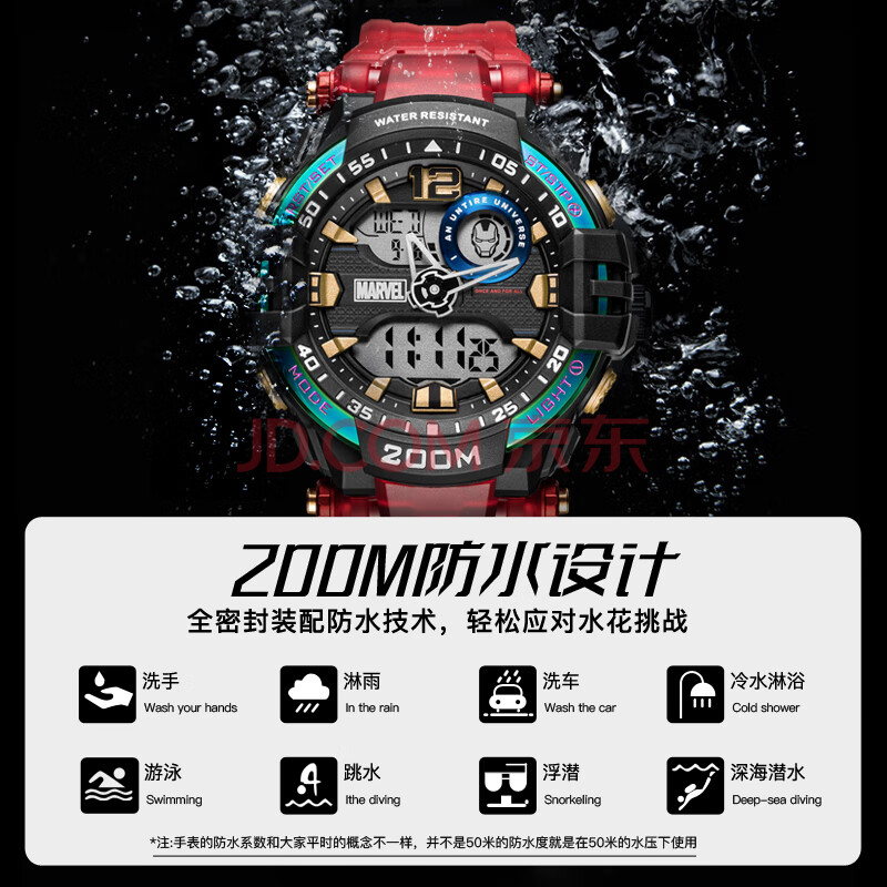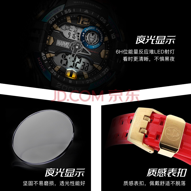 商品相册:漫威(Marvel)钢铁侠联名多功能运动电子表初高中学生儿童防水手表新年礼物第