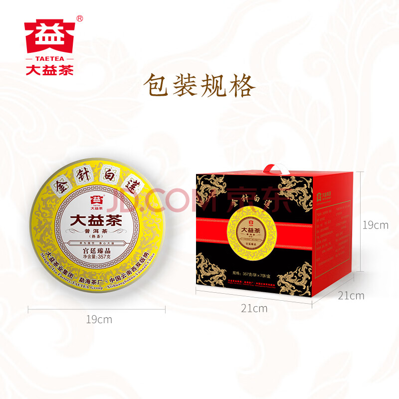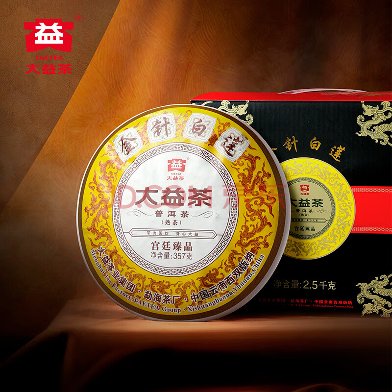 商品相册:大益TAETEA茶叶普洱茶饼茶 金针白莲熟茶357g*7饼2201批次 中华老字号第1张/共7