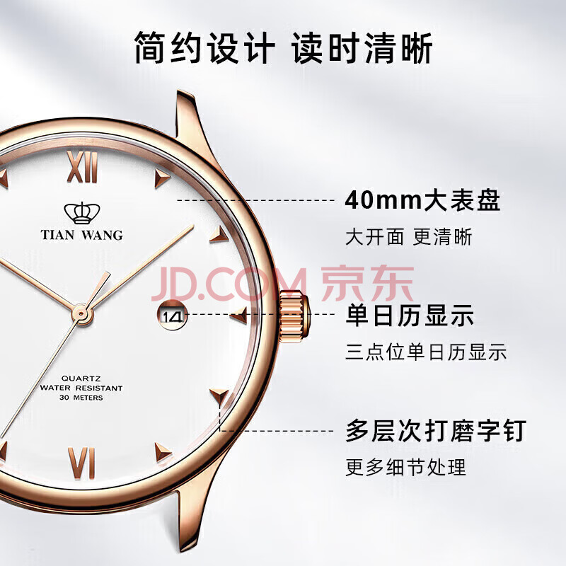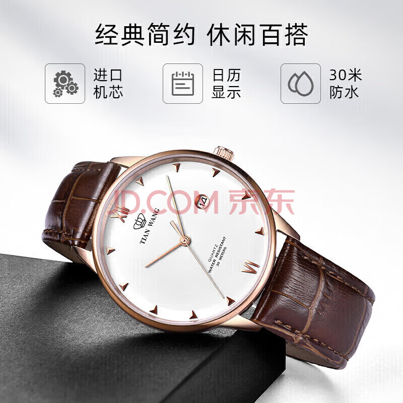 商品相册:天王(TIAN WANG)手表男 生日礼物皮带石英男表玫瑰金色GS31132P.D.LC.W第