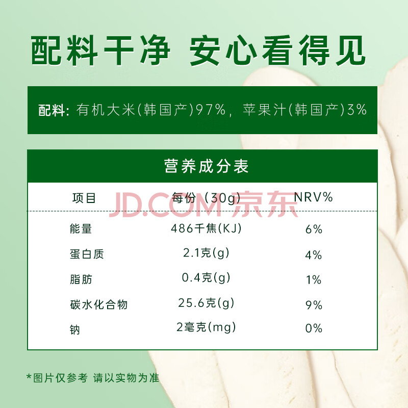 商品相册:艾唯倪(ivenet)有机米饼宝宝儿童零食磨牙棒 韩国原装进口入口易溶饼干苹果味30g第