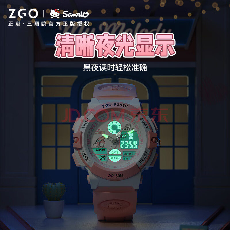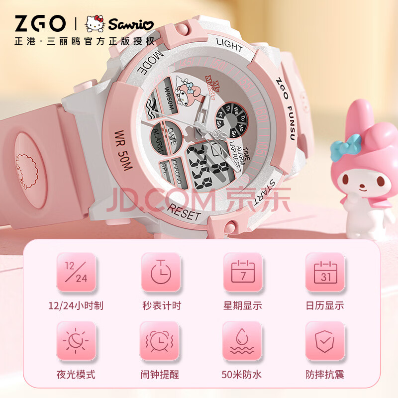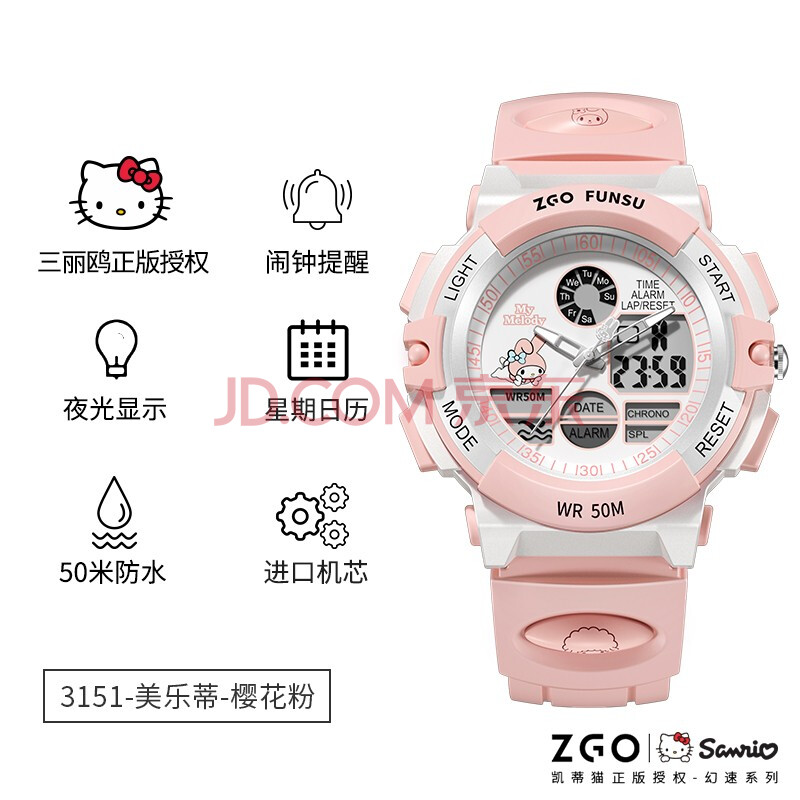 商品相册:正港(ZGO)三丽鸥 学生电子手表女初高中生闹钟看时间高颜值儿童电子表 3151第
