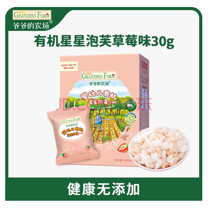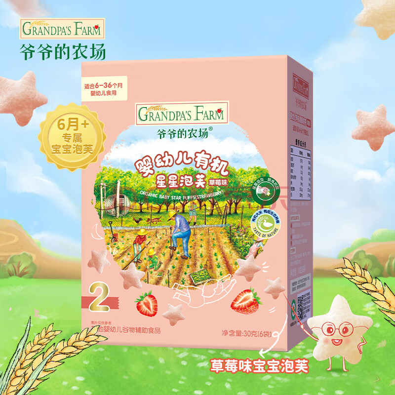 商品相册:爷爷的农场有机婴幼儿星星泡芙草莓味30g 宝宝儿童零食婴儿零食6-12个月 第