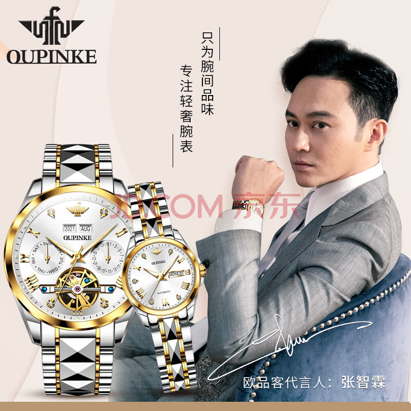 商品相册:欧品客瑞士认证品牌情侣手表一对手表男全自动机械表女生日礼物防水对表第