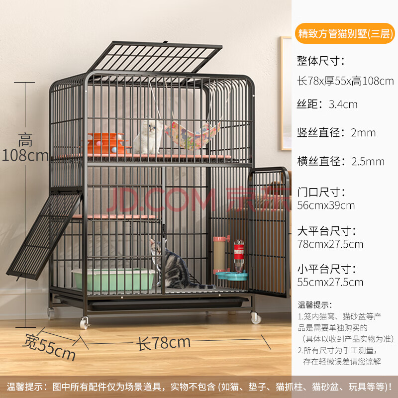 商品相册:腆宠 猫笼 猫别墅猫笼子带厕所大号加粗方管猫窝猫舍猫屋家用宠物笼子第