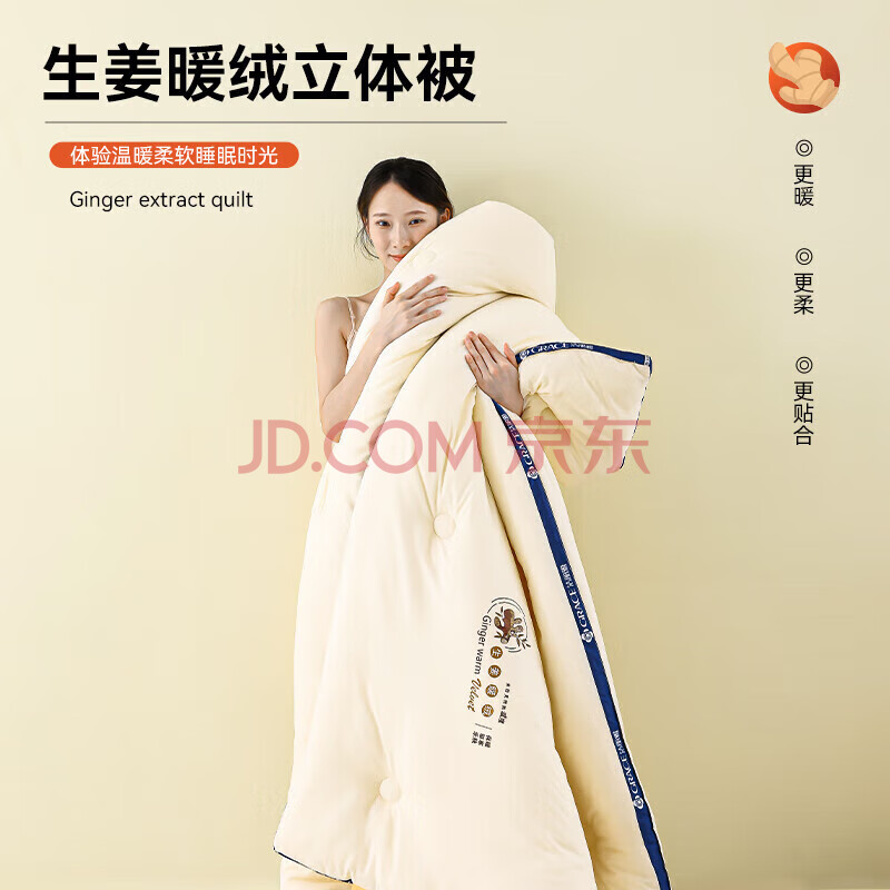 商品相册:洁丽雅(Grace)生姜暖绒被 A类面料 纤维春秋被 150*200cm4.2斤 米黄第