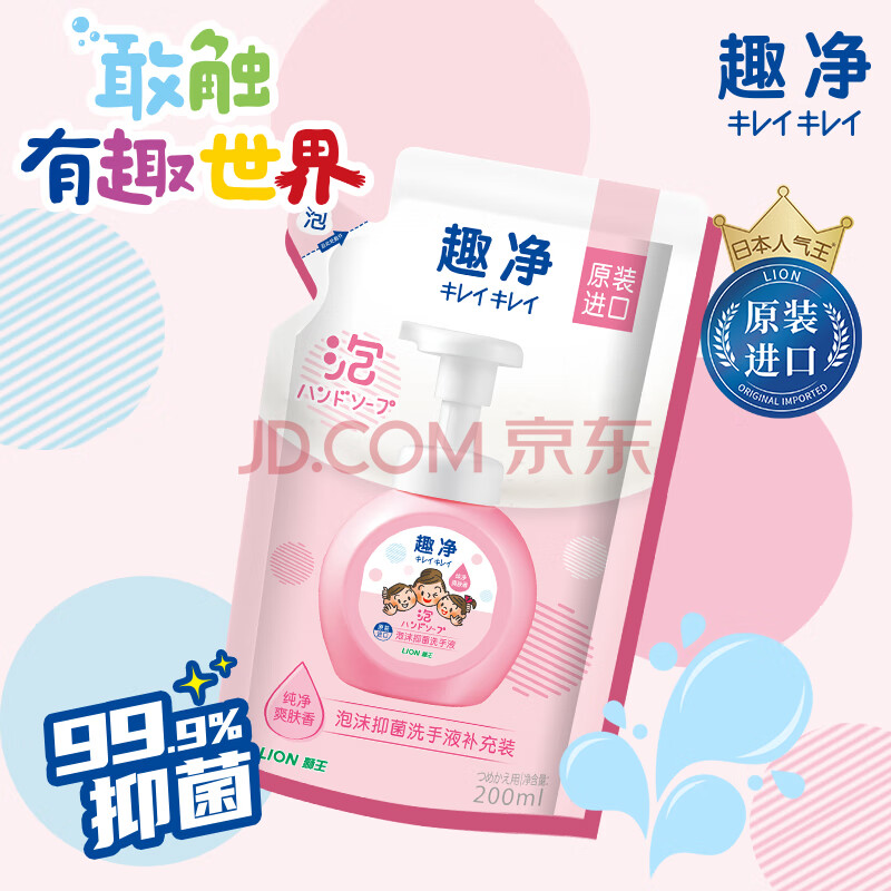 商品相册:狮王(Lion)趣净泡沫抑菌洗手液纯净爽肤香250ml+200ml*2儿童进口抑菌泡沫第