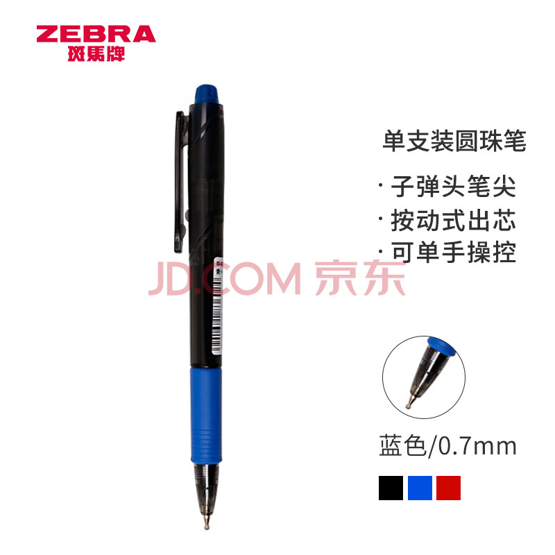 商品相册:斑马牌(ZEBRA)真心圆珠笔系列 0.7mm子弹头按压式原子笔学生办公用中油笔 ID-A200 蓝色第
