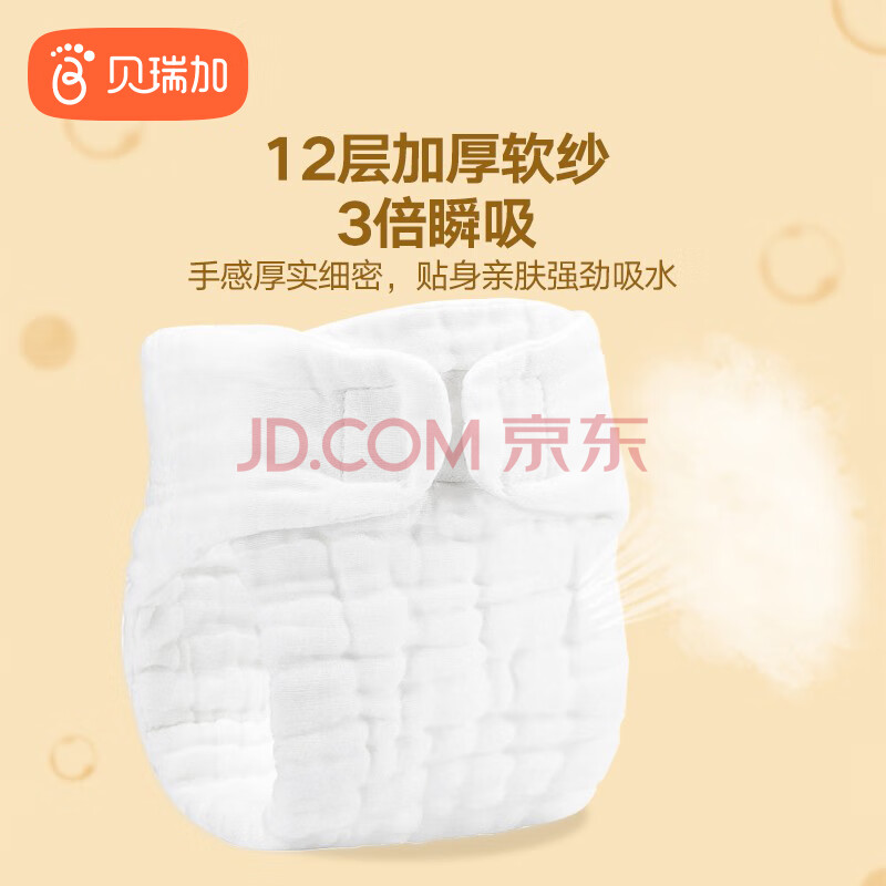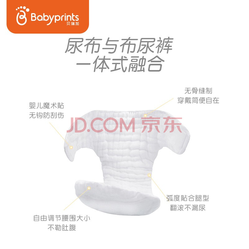 商品相册:Babyprints尿布裤婴儿纱布一体式新生儿可水洗戒子兜尿片抑菌率>99%5条装第