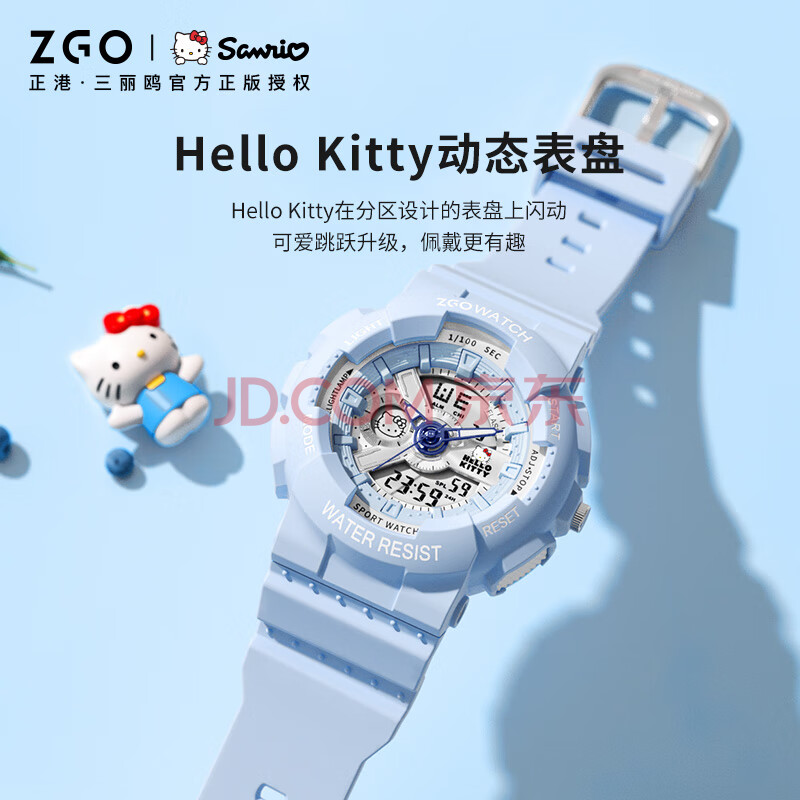 商品相册:正港(ZGO)x三丽鸥手表女学生电子表中学生少女儿童运动电子手表 8511蓝雪蓝第