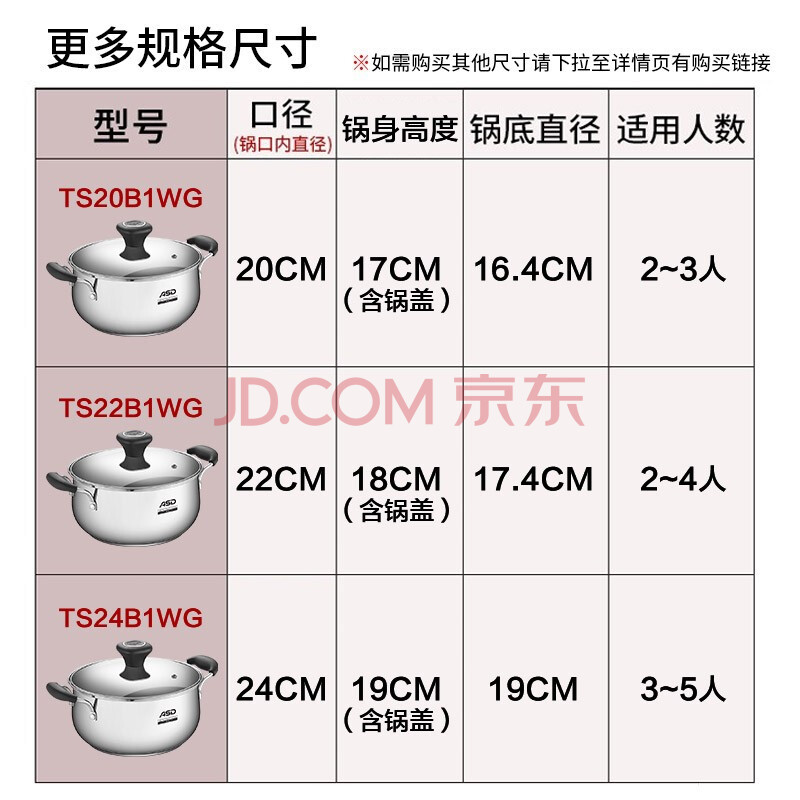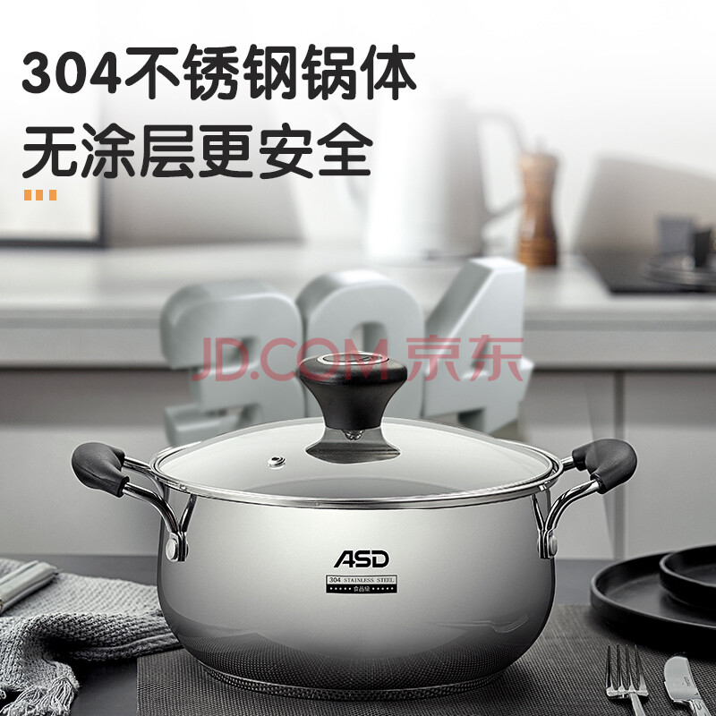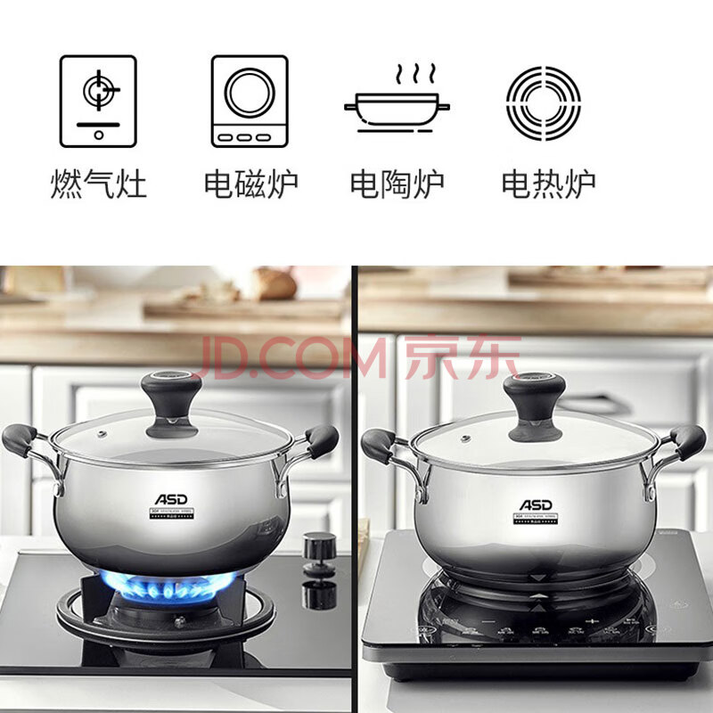 商品相册:爱仕达(ASD)汤锅 304不锈钢小汤锅 蒸锅复底炖煮锅 20CM燃气电磁炉通用奶锅B1第