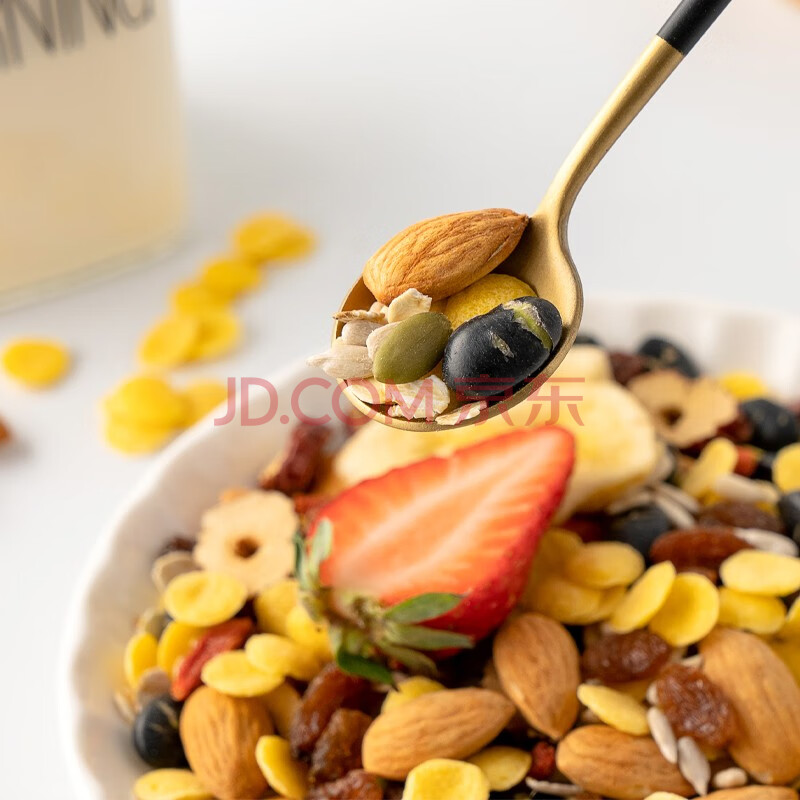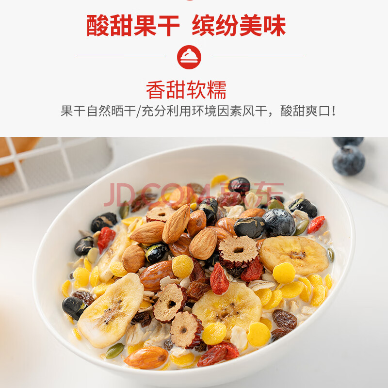 商品相册:福事多水果坚果燕麦片1kg大罐装即食免煮冲饮早餐代餐饱腹谷物酸奶伴侣第