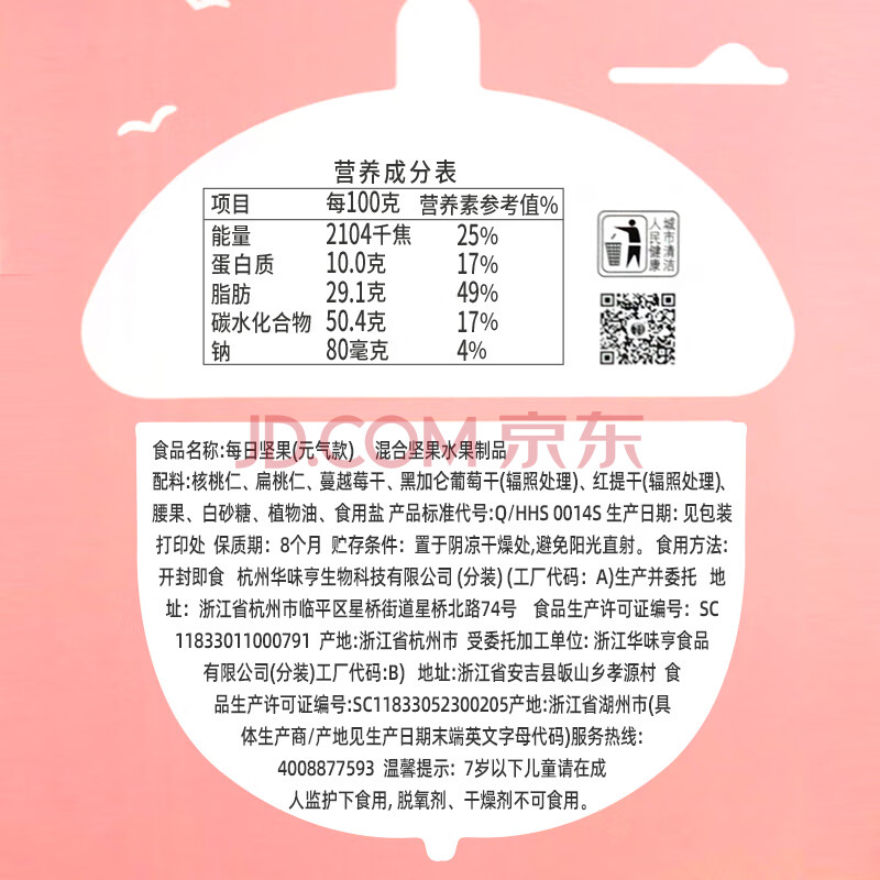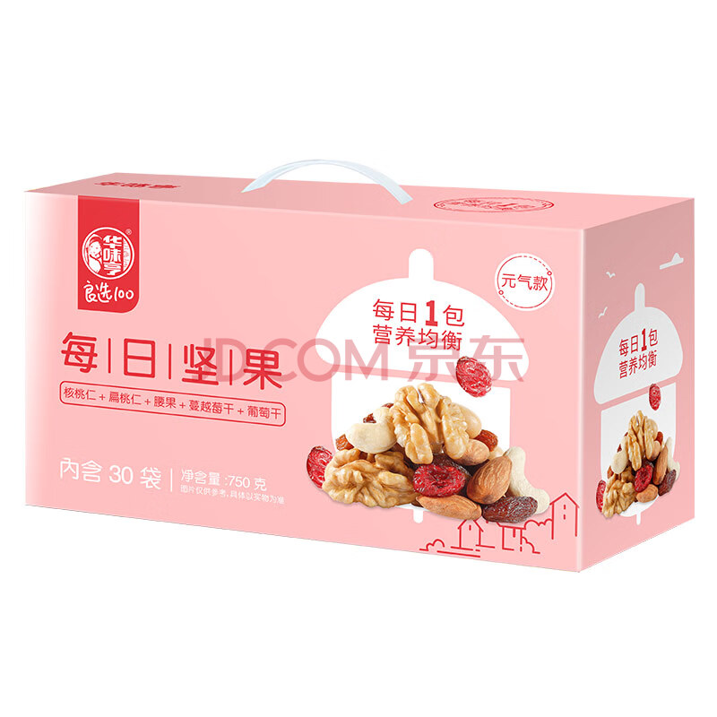 商品相册:华味亨每日坚果750g/盒零食元气款30袋坚果炒货企业团购礼盒第