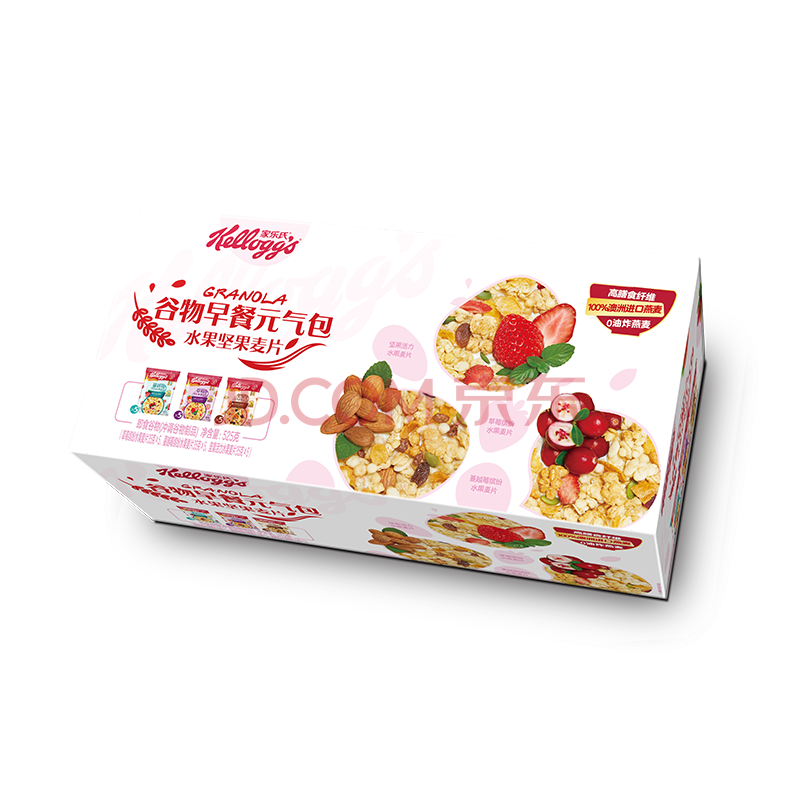 商品相册:家乐氏早餐水果坚果麦片独立小包装办公室下午茶点酸奶谷物脆525g礼盒第