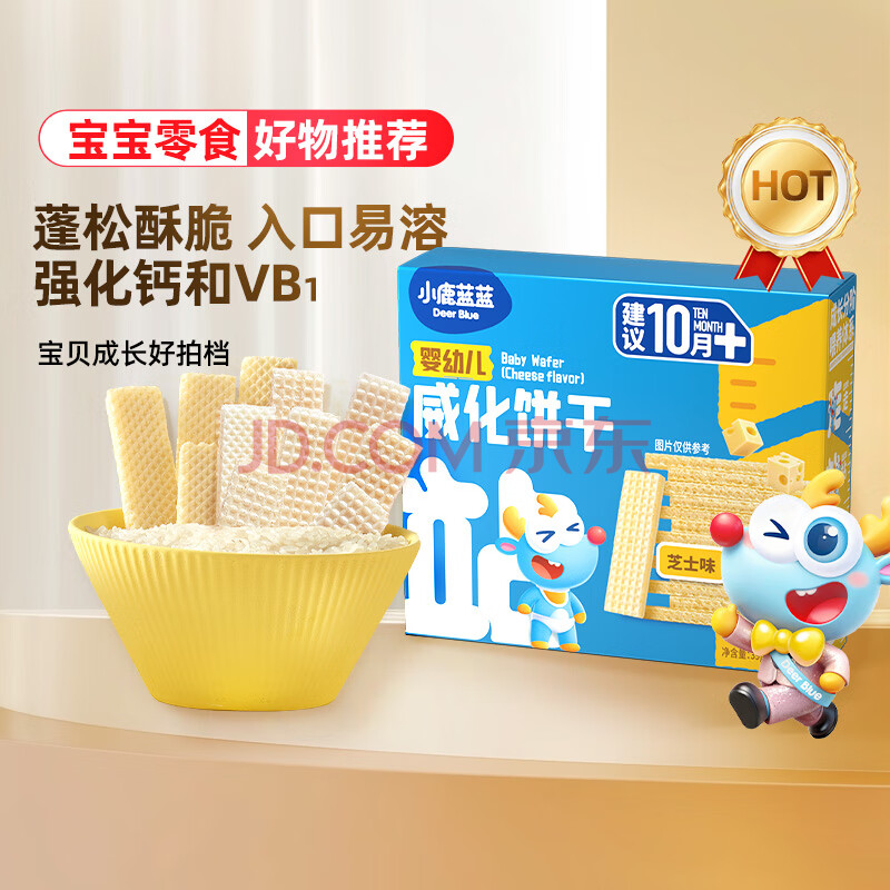 商品相册:小鹿蓝蓝婴幼儿威化饼干 芝士味 婴幼儿宝宝零食手指米饼干 39g第