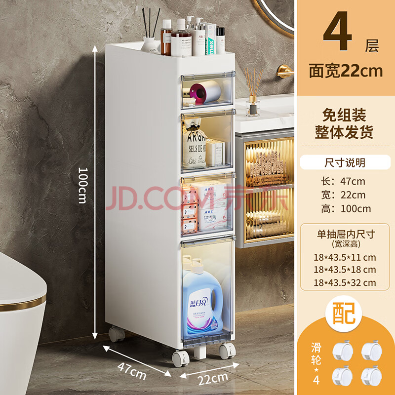 商品相册:JEKO&JEKO夹缝收纳柜卫生间置物架宽22CM四层厕所浴室柜第
