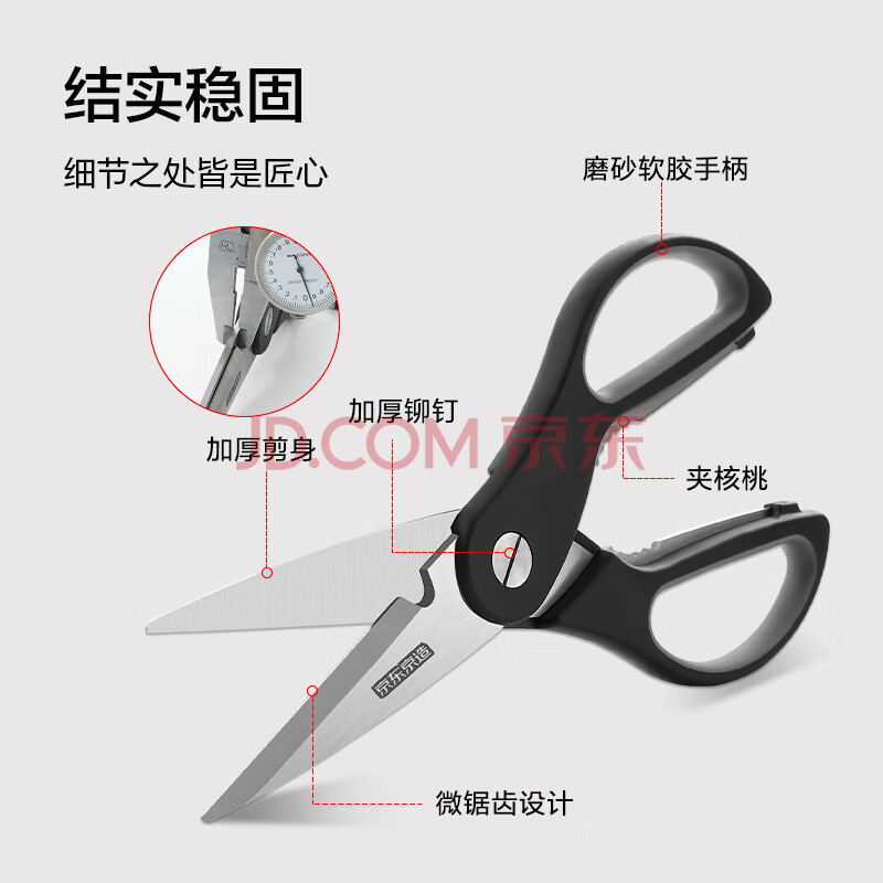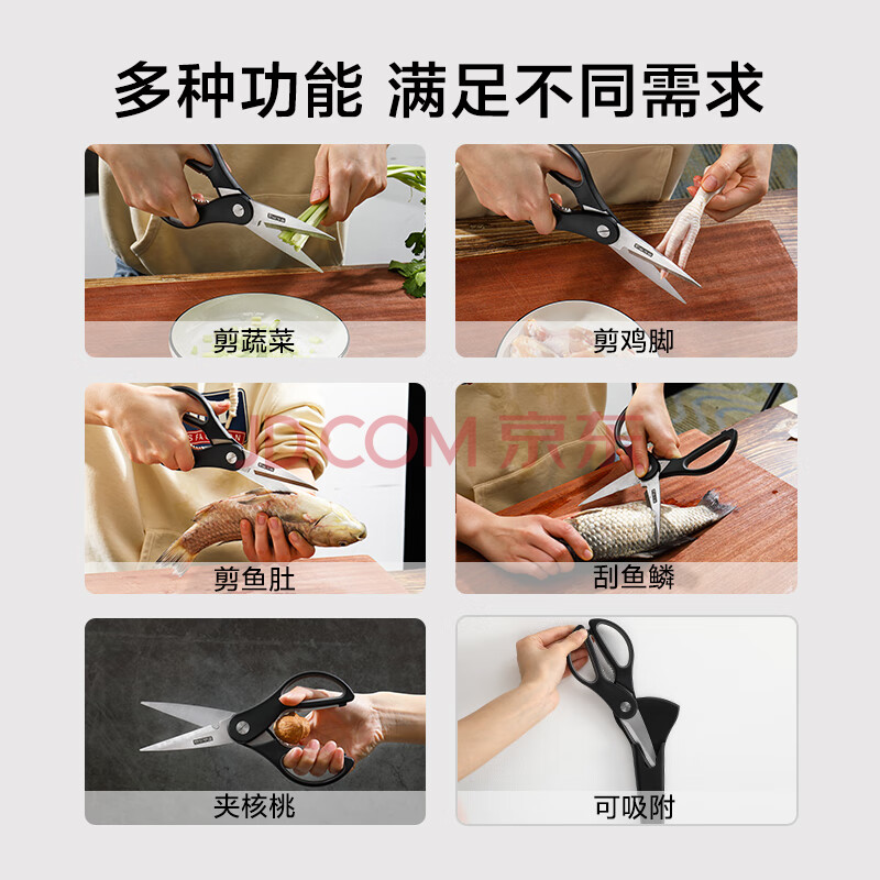 商品相册:京东京造 厨房剪刀 剪鸡骨头不锈钢强力【可吸附冰箱】多功能剪第