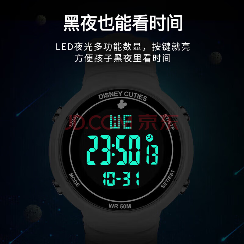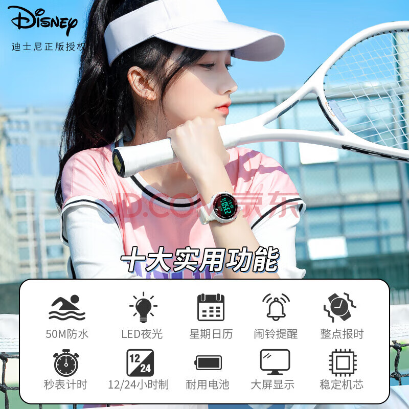 商品相册:迪士尼(Disney)学生手表女初高中生数显防水电子表多功能夜光运动手表开学礼物第