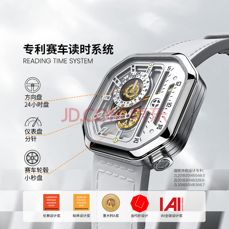 商品相册:爱勒 AGELOCER原创赛车表时尚女士镂空机械手表高端国表大表盘送女友生日礼物第