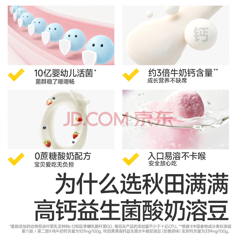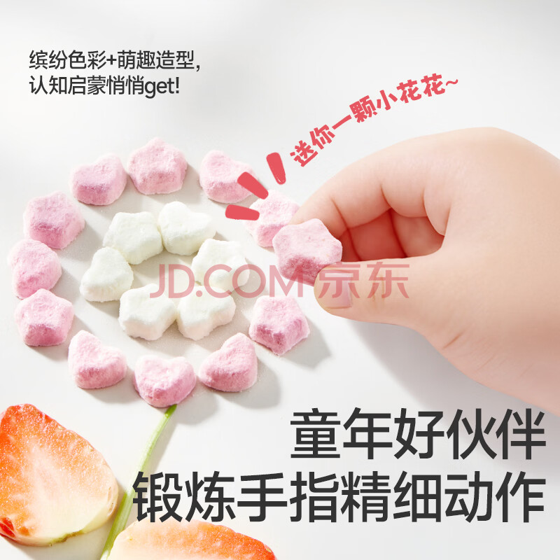 商品相册:秋田满满高钙益生菌酸奶溶豆草莓味儿童零食易吞咽18g享6个月以上婴儿食谱第