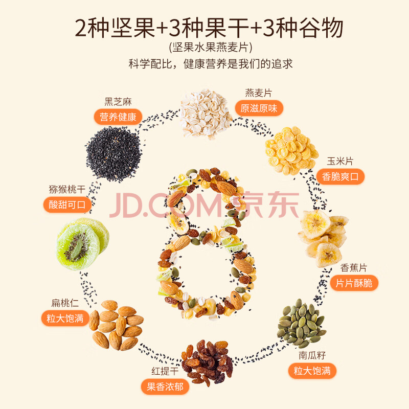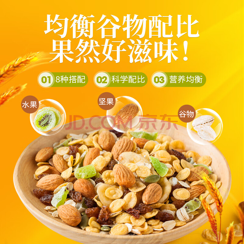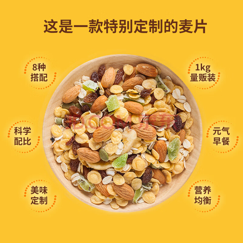 商品相册:福事多燕麦坚果混合麦片1kg/桶营养早餐五谷健身代餐冲泡即食休闲零食第1张/共6