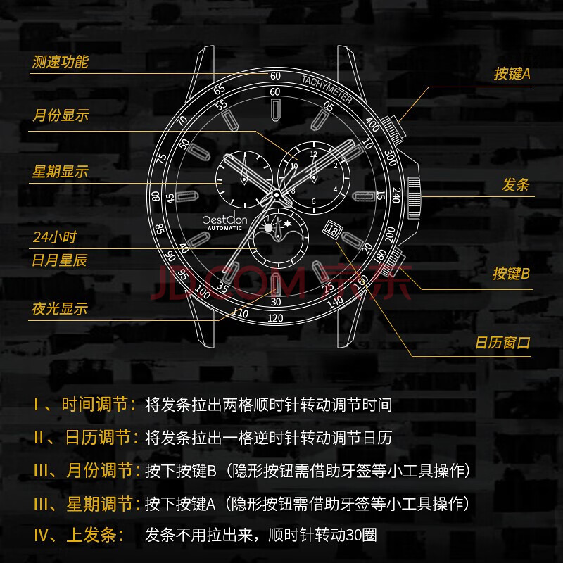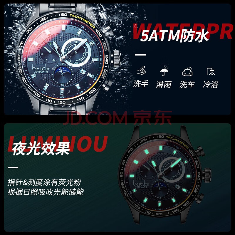 商品相册:邦顿(Bestdon)手表男全自动机械表大表盘潮流军腕表礼盒男款礼物送男生第