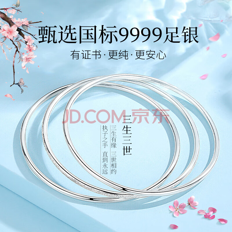 商品相册:唯一(Winy)银手镯女款足银9999镯子正品纯银饰品生日礼物送女友老婆第