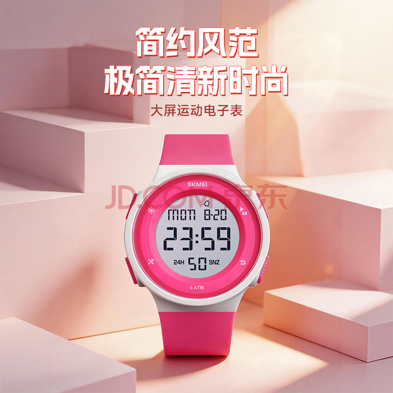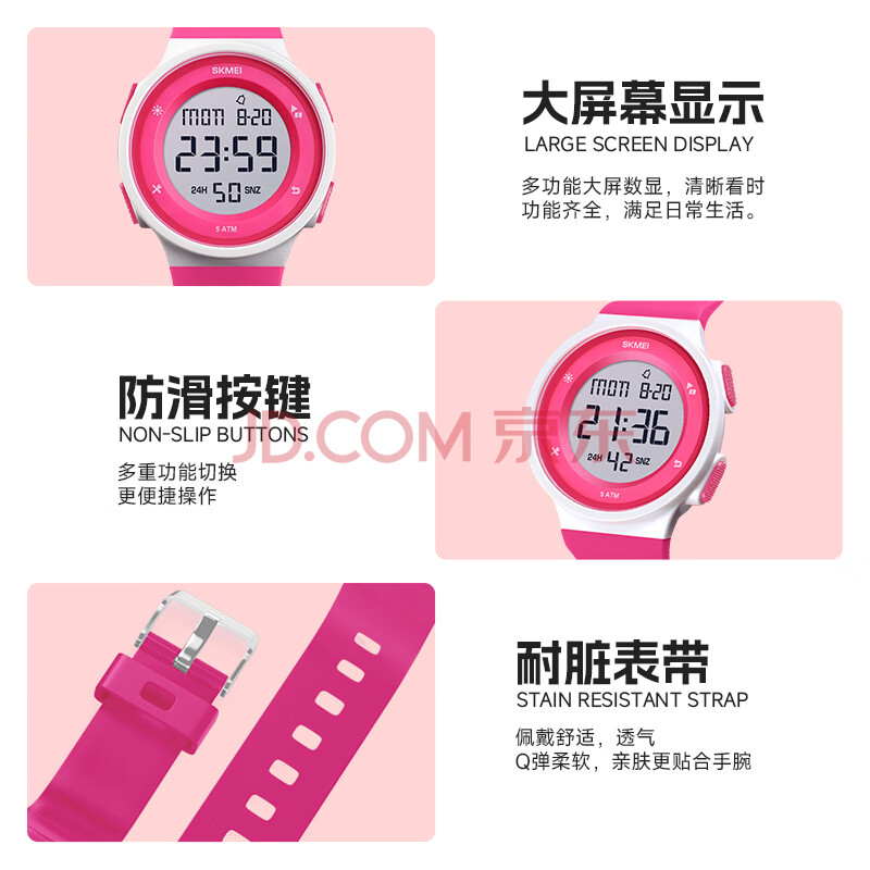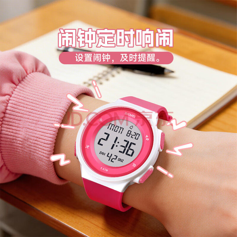商品相册:时刻美(skmei)运动电子表防水闹钟青少年初高中生小学生儿童手表看时间女生1445第