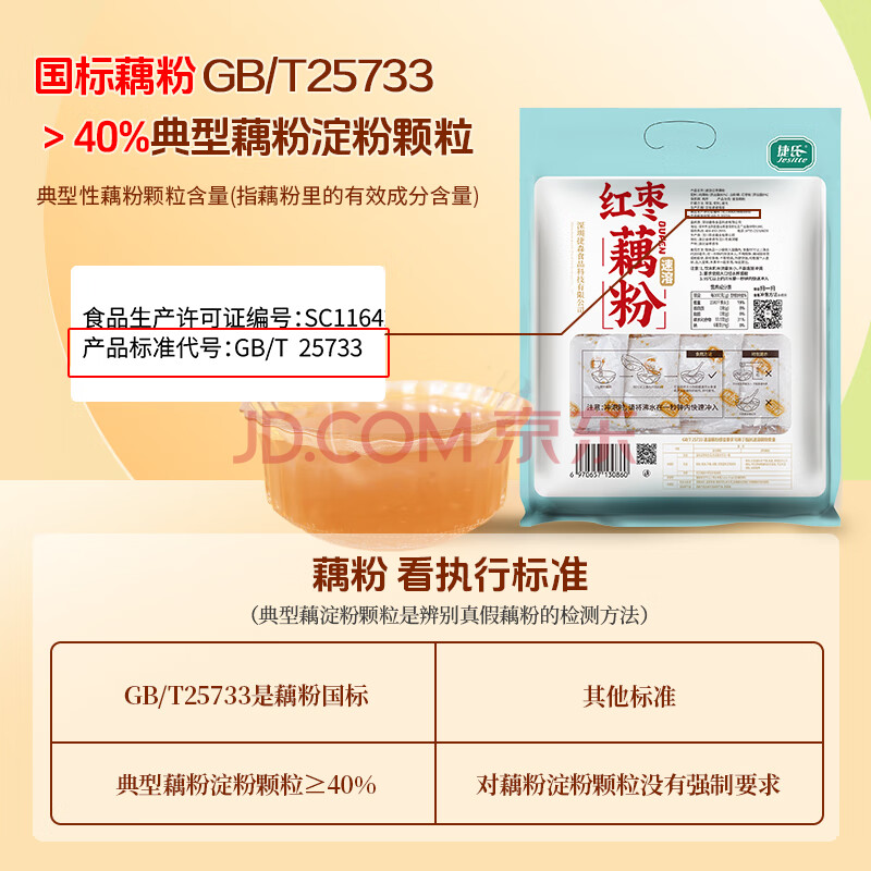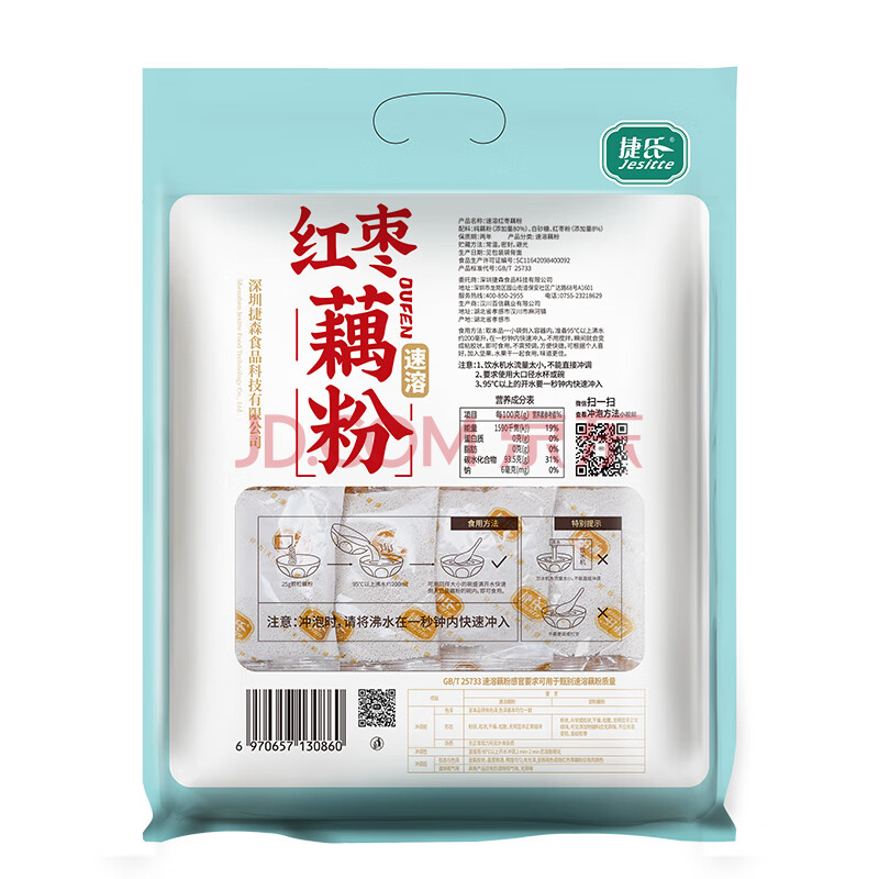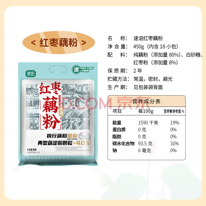 商品相册:捷氏红枣藕粉450g 速溶早餐纯藕粉羹古法莲藕代餐粉汉川特产独立小包第