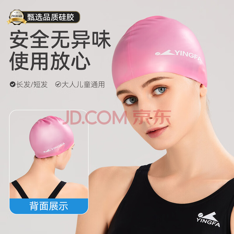 商品相册:英发(YINGFA)泳帽 纯色硅胶长发防水舒适不勒头男女通用成人游泳帽 粉红色第