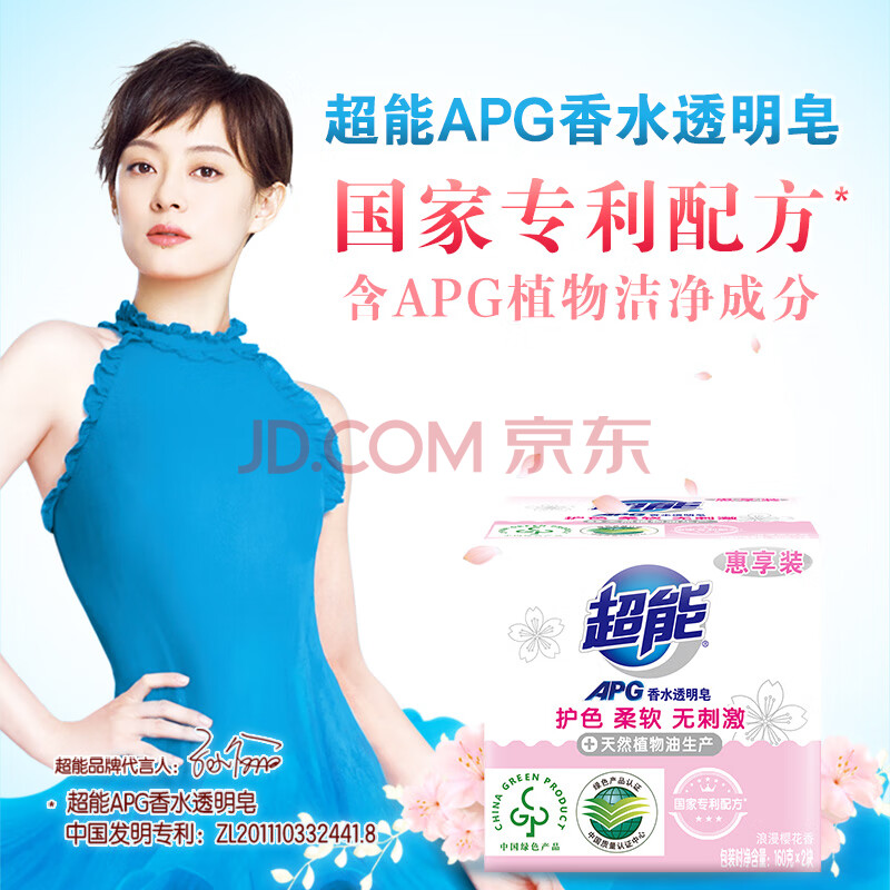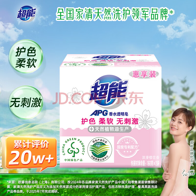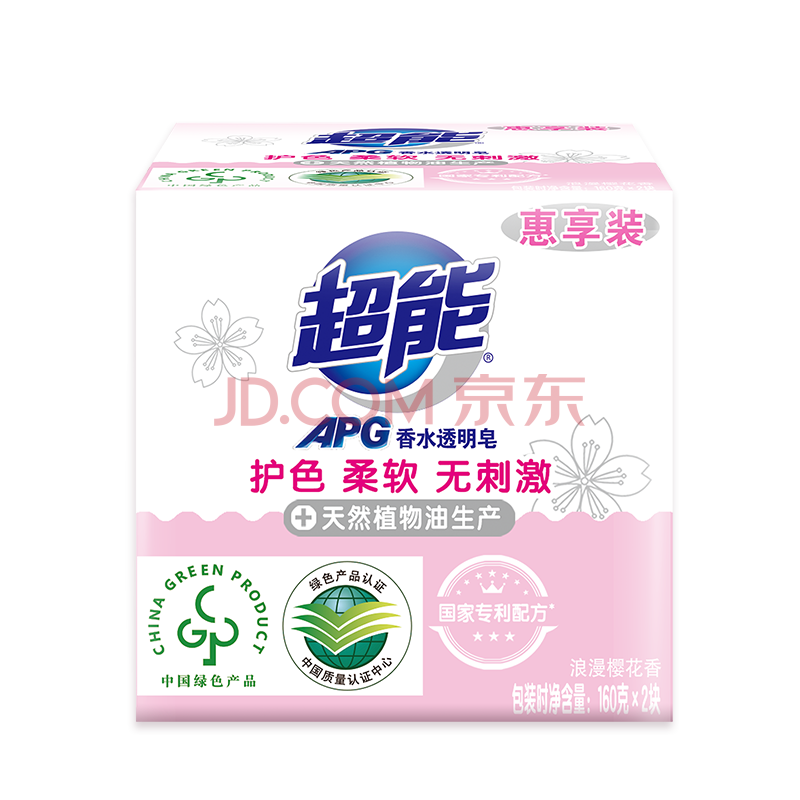 商品相册:超能 APG香水透明皂 浪漫樱花香 160g*2块 护色 柔软 不刺激第