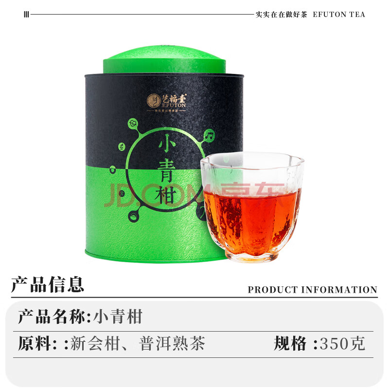 商品相册:艺福堂普洱茶 新会小青柑350g小沱茶生晒罐装 宫廷普洱熟茶陈皮柑普茶叶第