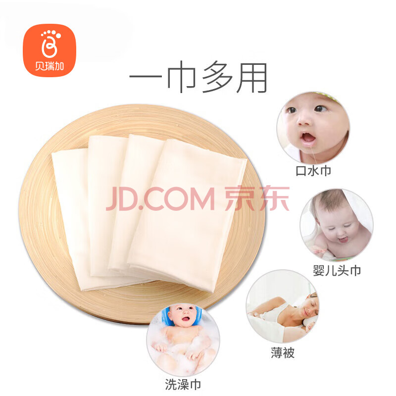 商品相册:Babyprints尿布婴儿纱布抑菌纯棉新生儿尿片戒子布可水洗10片装第1张/共9