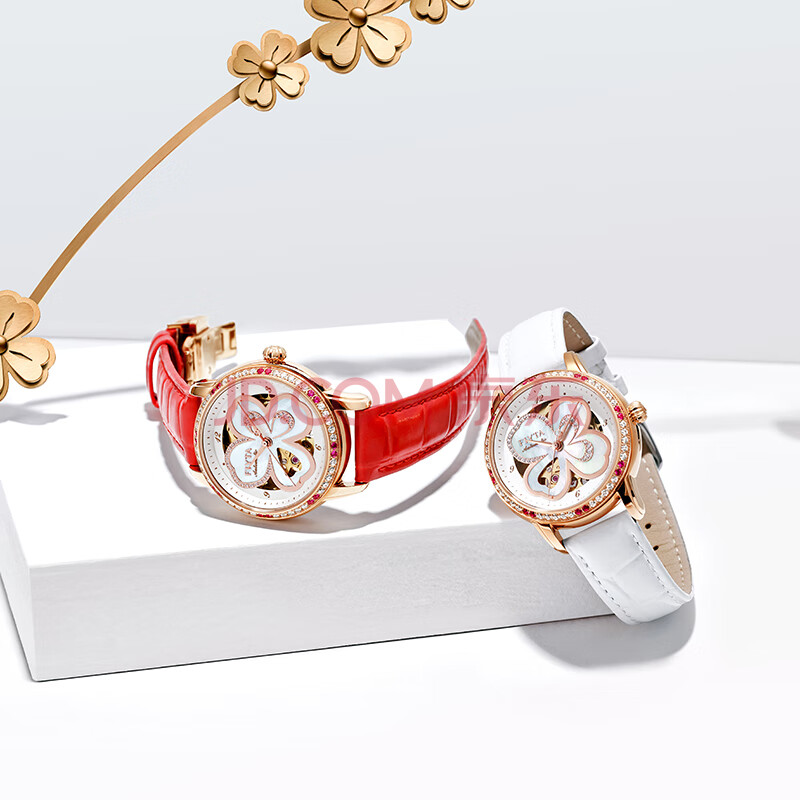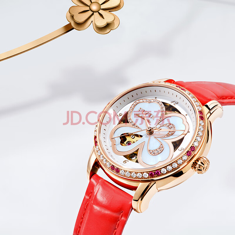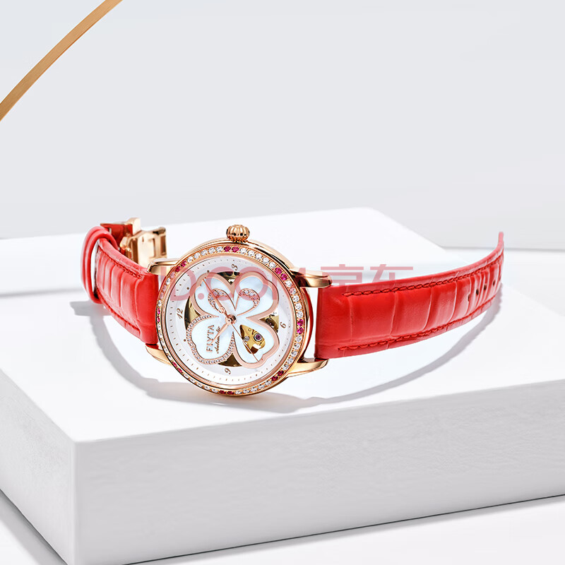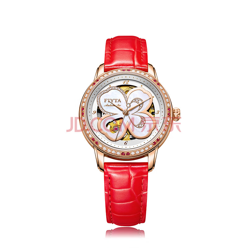 商品相册:飞亚达(FIYTA)四叶草系列 高圆圆同款贝母镂空盘皮带机械表 送老婆节日礼物第