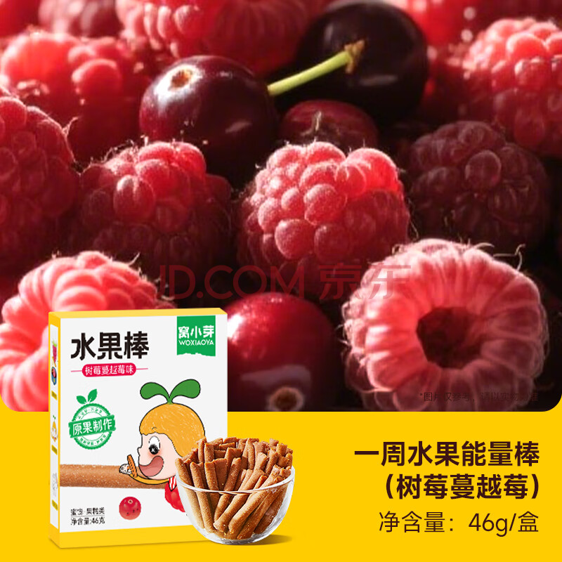 商品相册:窝小芽儿童零食一周水果能量棒(树莓蔓越莓)46g 99%原果制作即食水果条第