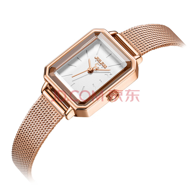 商品相册:聚利时(Julius)手表女简约韩版小方盘网带小众石英防水女士手表玫瑰金JA-1223A第
