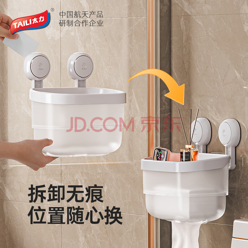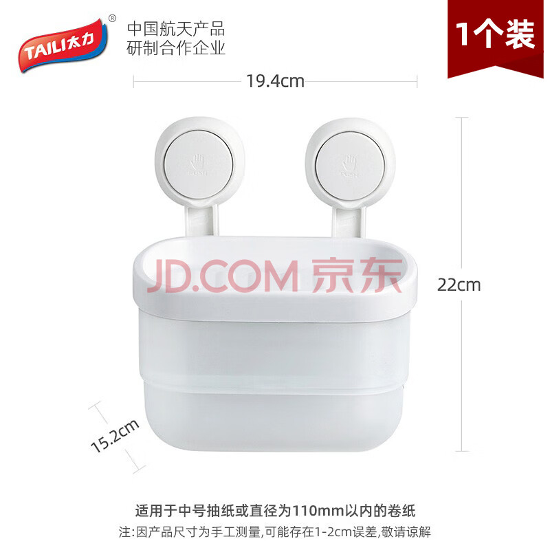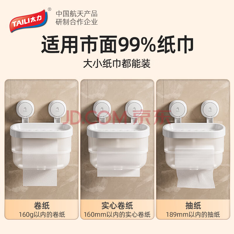 商品相册:太力吸盘卫生间纸巾盒浴室厕所壁挂抽纸盒厕纸架卷纸架置物防水免打孔第
