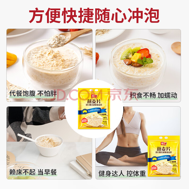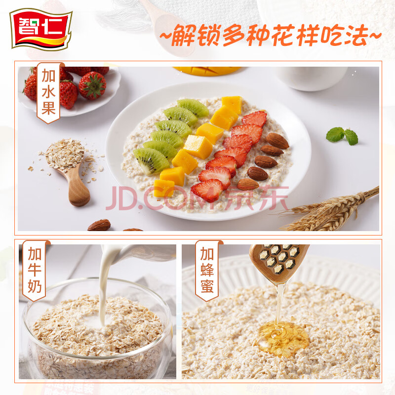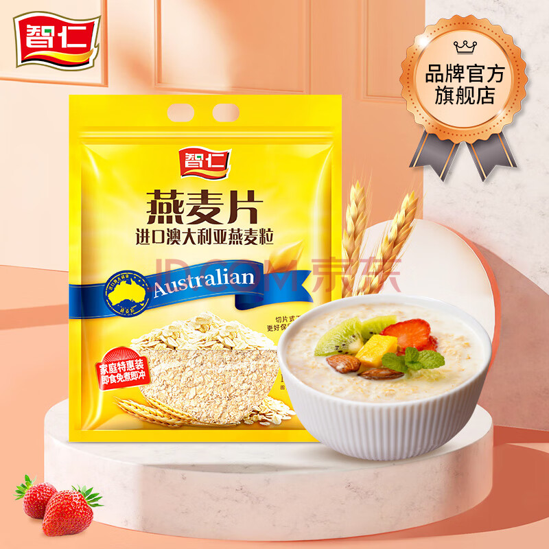 商品相册:智仁 纯燕麦片1000g 原味无另添蔗糖 纯麦片即食谷物代餐冲饮营养早餐第