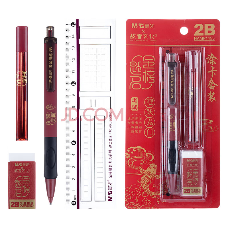 商品相册:晨光(M&G)文具2B自动涂卡铅笔涂卡尺套装 故宫文化金榜题名系列考试/考公4件套HAMP1455红蓝随机发第