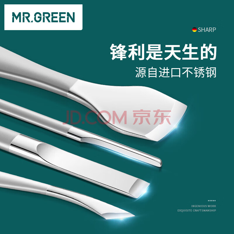 商品相册:MR.GREEN德国修脚刀套装修甲沟炎灰指甲去死皮老茧进口工具4件套Mr-9103第1张/共6