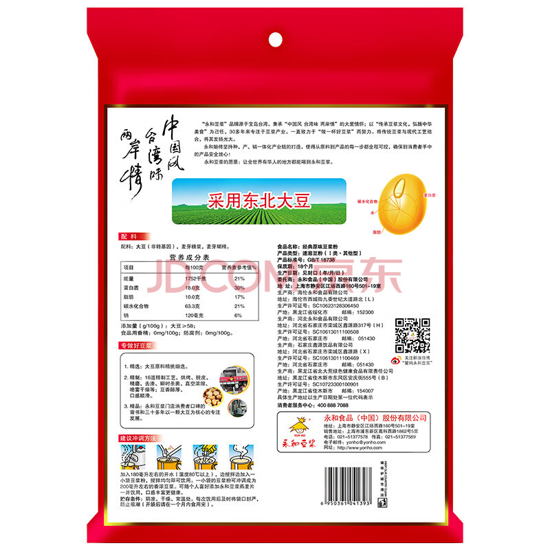 商品相册:永和豆浆经典原味豆浆粉 540g 内含18小包 高蛋白 即食早餐代餐第